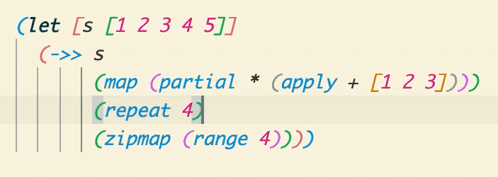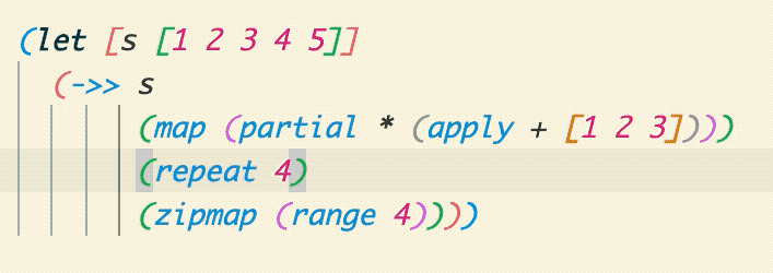 When dragging forms inside maps and binding boxes, such as with let, for, binding, etcetera, it often makes most sense to drag each binding as a pair. And this is what Calva will do. Like so:
